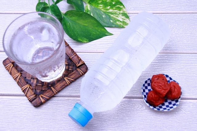 ①ペットボトルなどに水、砂糖、塩を加えてシェイクする。